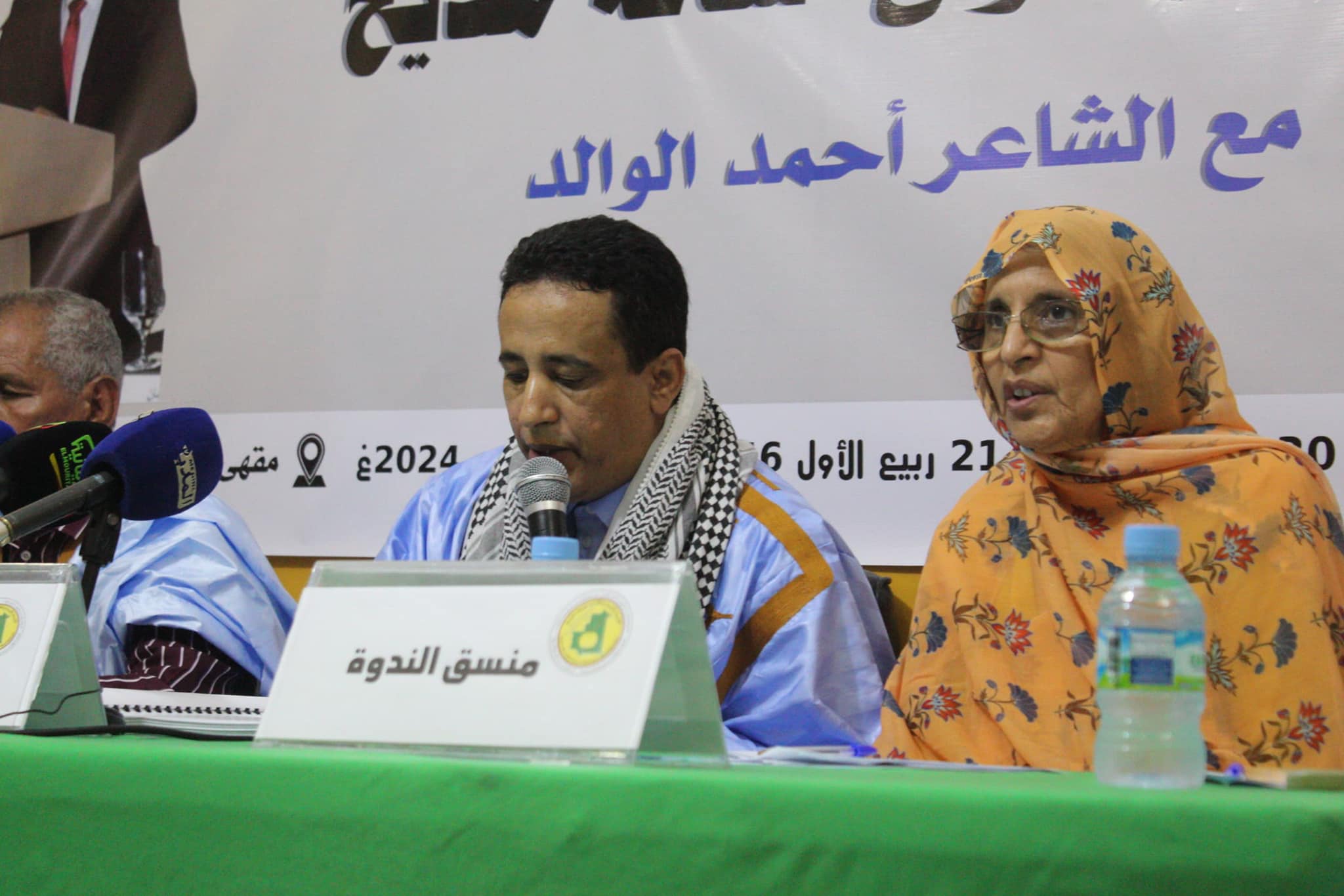 نظّم الاتحاد الموريتاني للأدب الشعبي، بالتعاون مع اتحاد الأدباء والكتاب الموريتانيين، ندوة أدبية بعنوان "ساعة مديح"، قدّمها الأديب الكبير أحمد ولد الوالد بنصوص شعرية فصيحة وحسانية في مديح المصطفى صلى الله عليه وسلم.